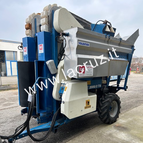 Macchina equipaggiata con due aspiratori inferiori, due aspiratori superiori e kit modifica scuotitura LaCruz con 8 scuotitori per lato.