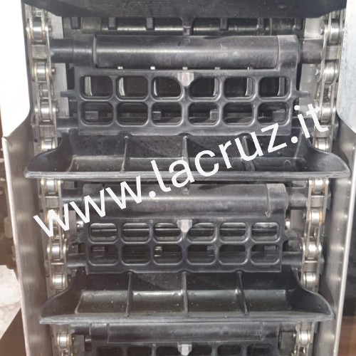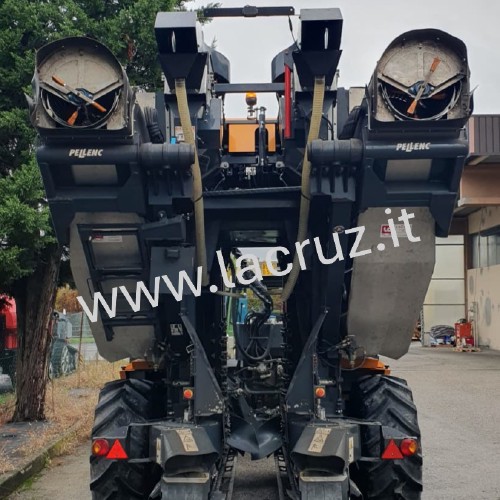 Macchina equipaggiata con sistema di pulizia Clean Master, sistema di scuotitura Smart System Evo con 9 scuotitori per lato, due aspiratori inferiori e due aspiratori superiori.