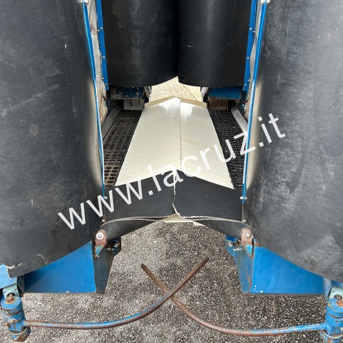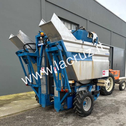 Macchina equipaggiata con due aspiratori inferiori, due aspiratori superiori e kit modifica scuotitura LaCruz con 8 scuotitori per lato.